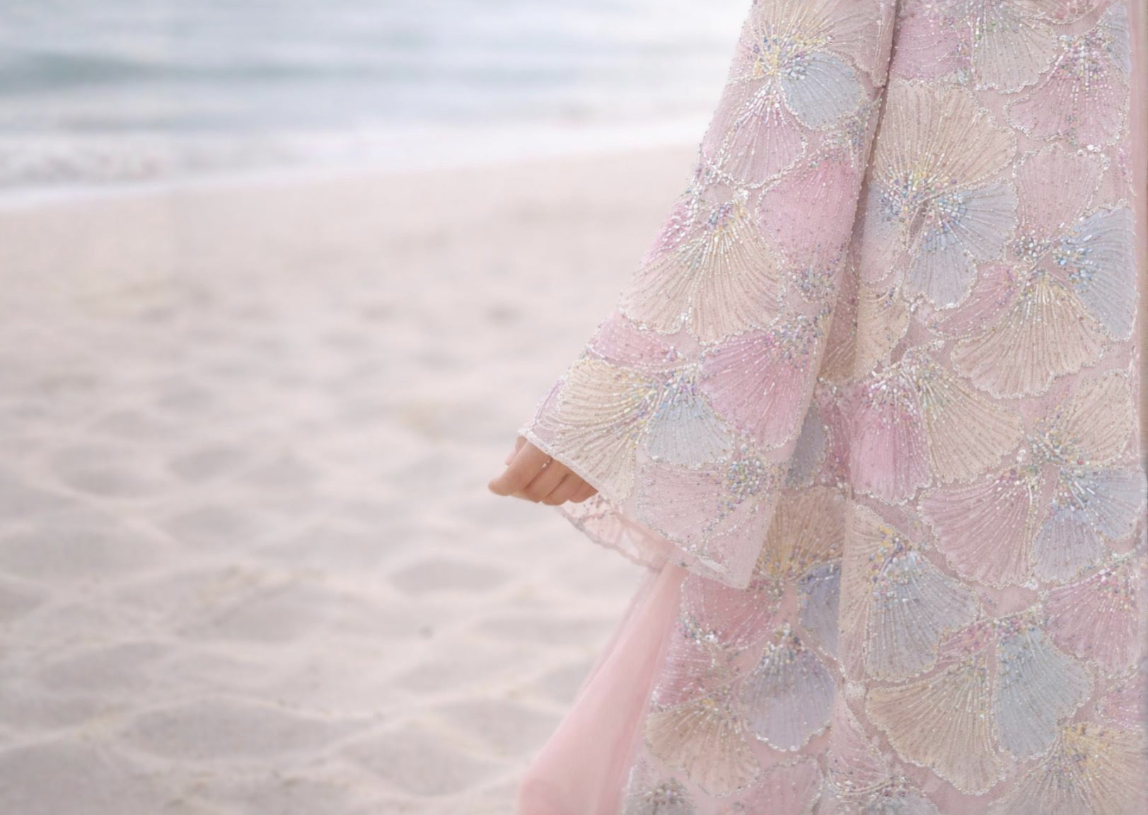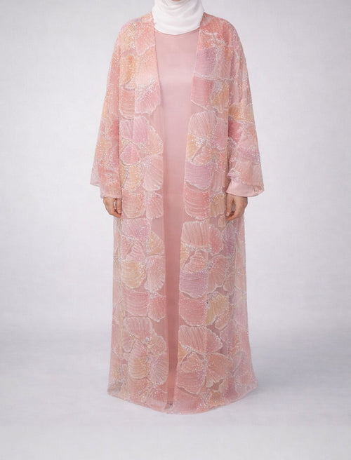 Pastel Ginko Sheer Beaded Abaya